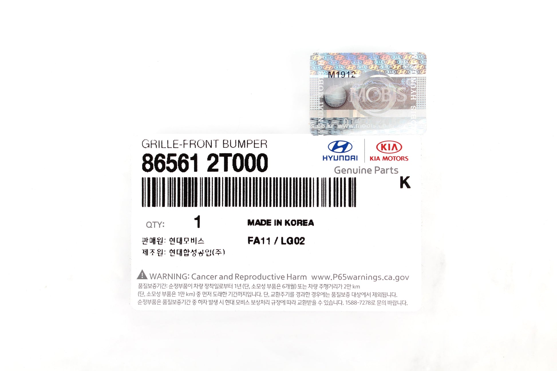 GENUINE Front Bumper Grille Center Lower for 2011-13 Kia Optima 865612T000