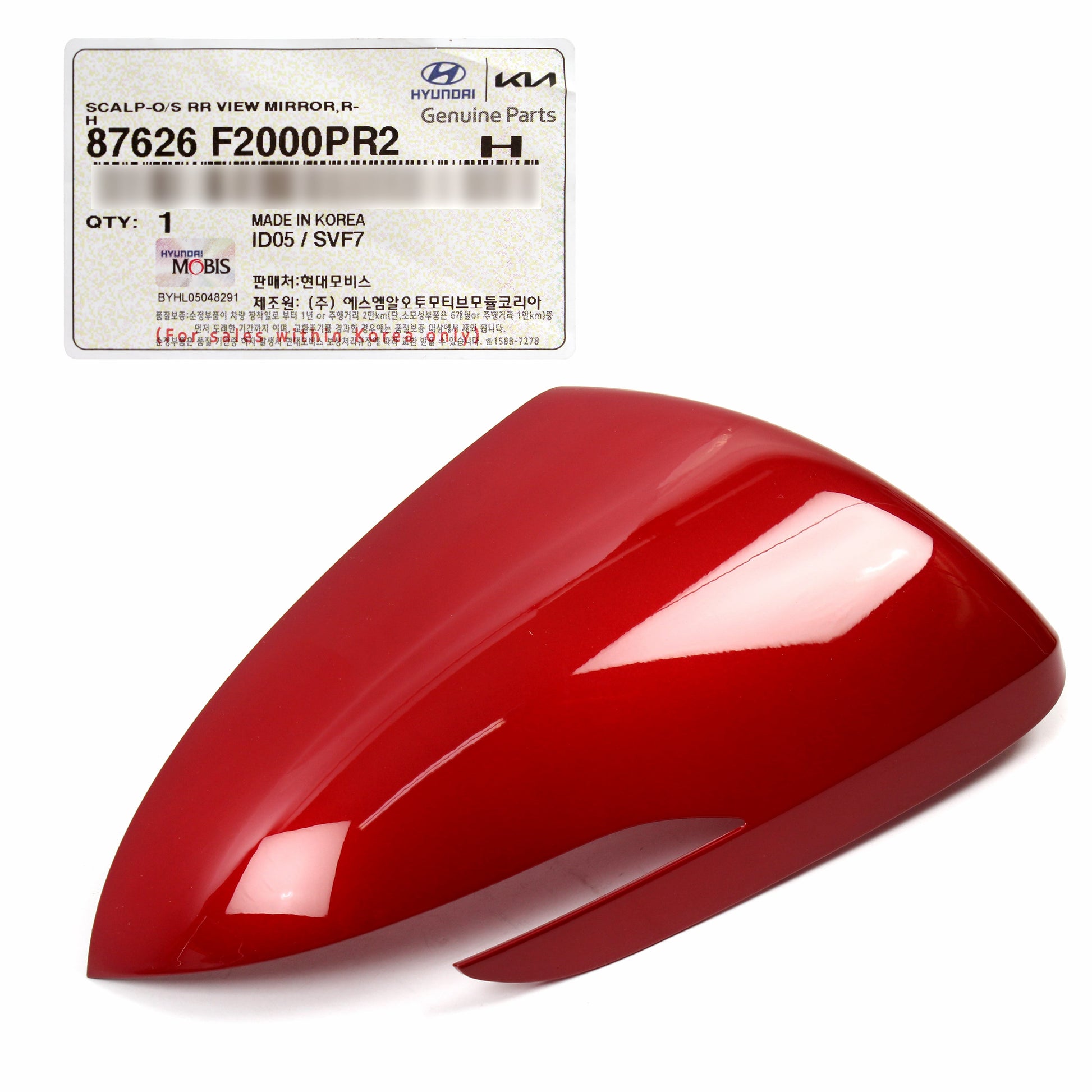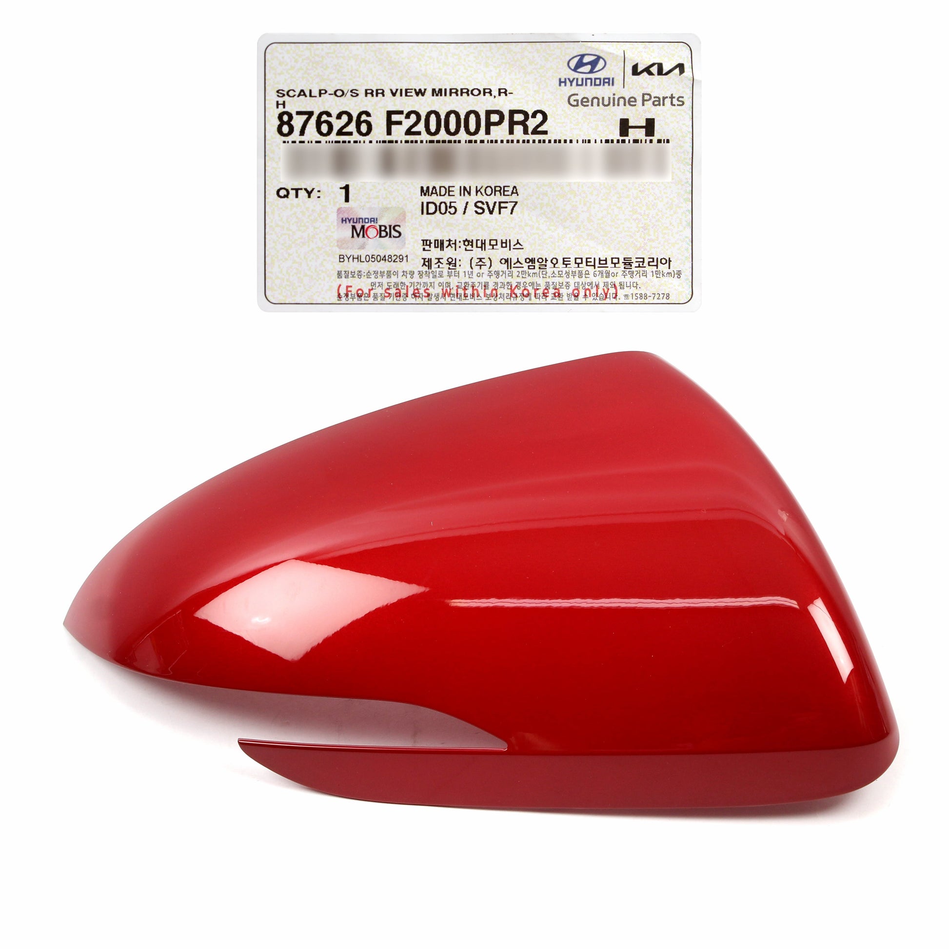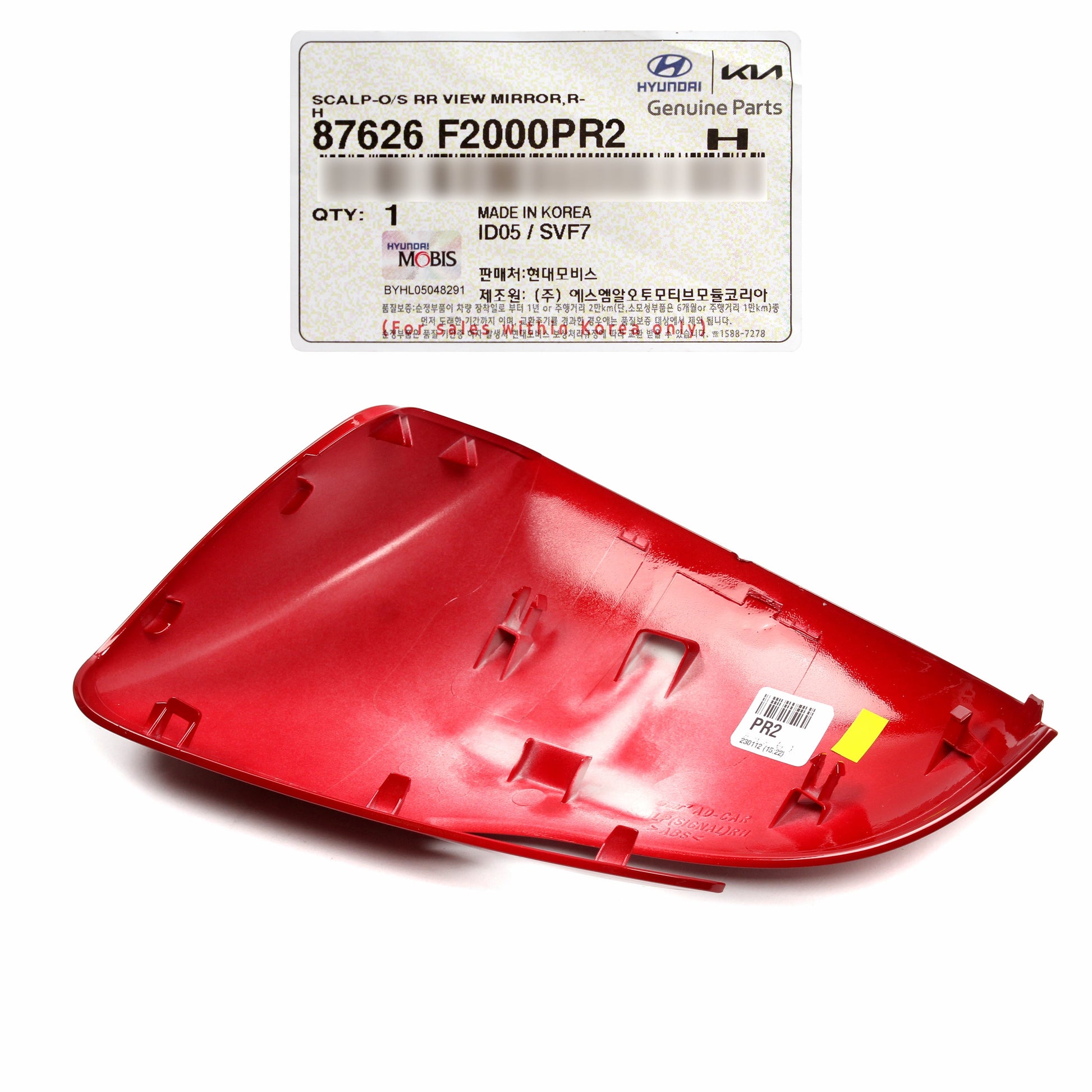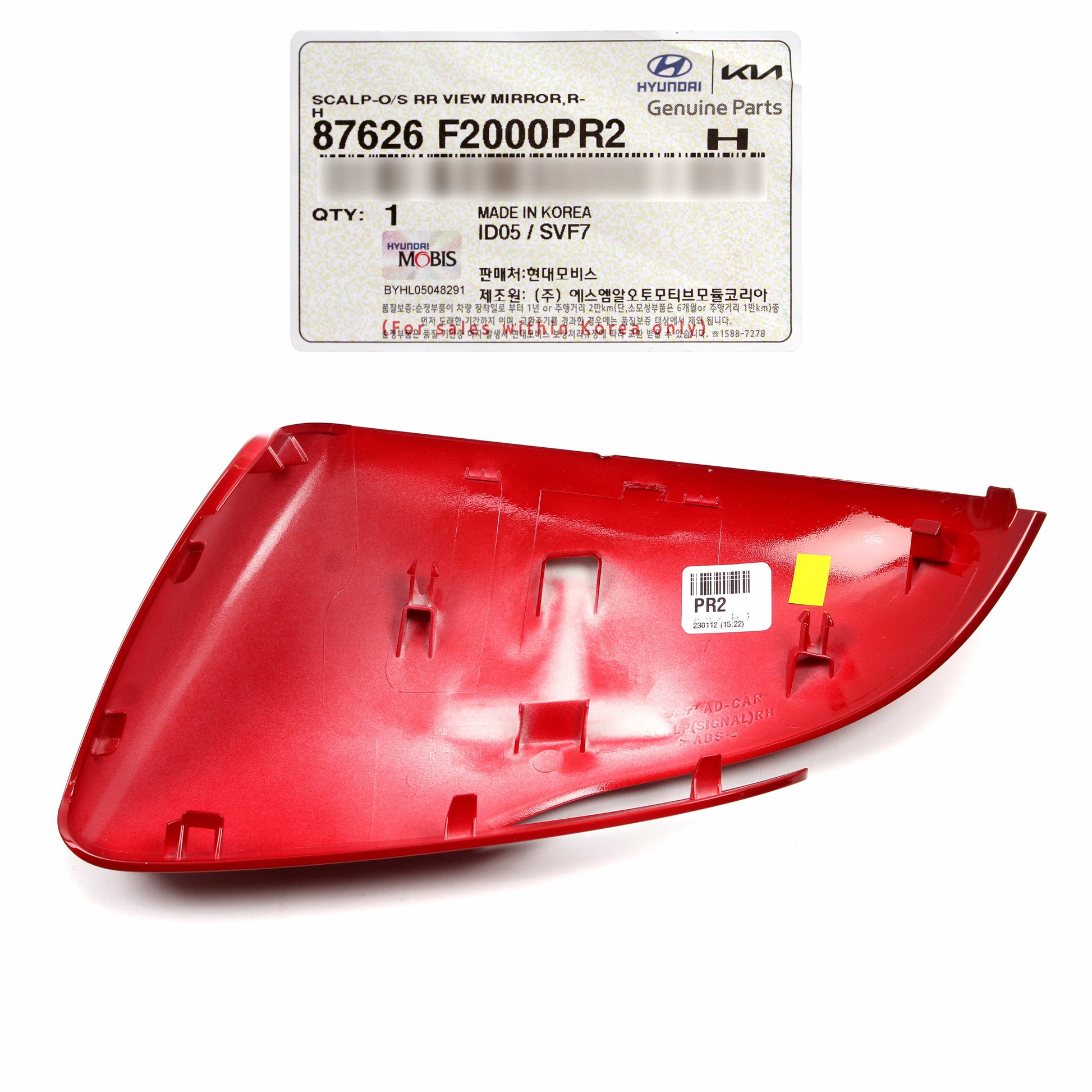 OEM Mirror Cover RIGHT PASSEGNER for 17-20 Hyundai Elantra Sedan 87626F2000PR2