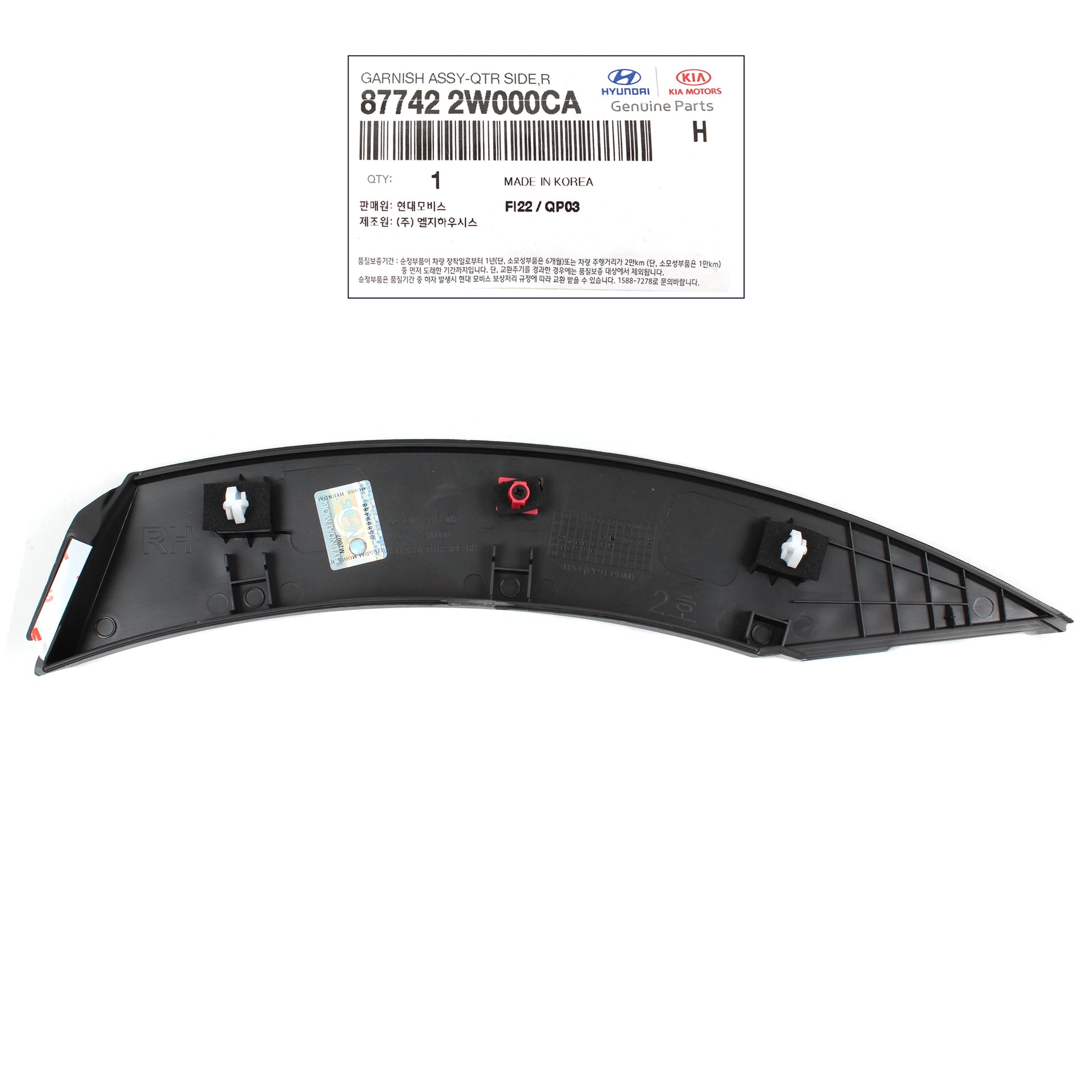 OEM Rear Fender Molding RIGHT for 13-18 Hyundai Santa Fe Sport 877422W000CA